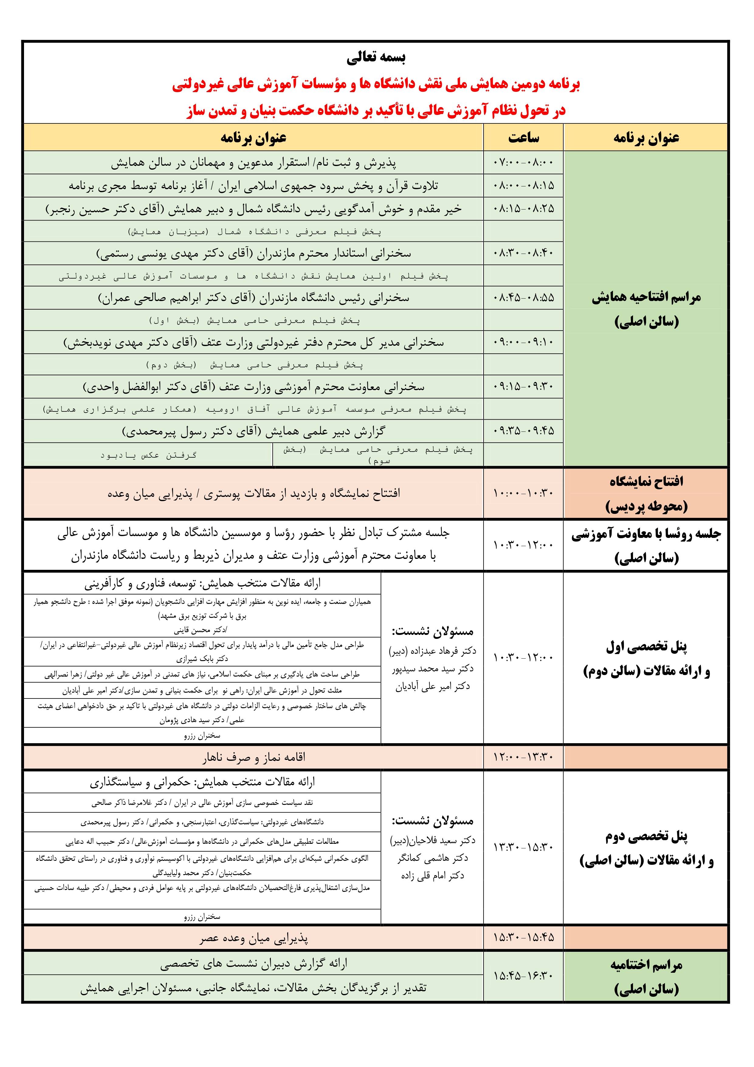 دومین همایش ملی نقش دانشگاه ها و موسسات آموزش عالی غیردولتی در تحول نظام آموزش عالی با تاکید بر دانشگاه حکمت بنیان و تمدن ساز